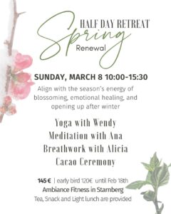 Spring Renewal is a half-day retreat designed to help you align with the season’s energy of blossoming, emotional healing, and opening up after winter. Through mindful practices and nourishing community, you’ll reconnect with yourself, gain clarity, and step forward feeling grounded and inspired.